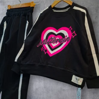 ست دخترانه قلب بلوز و شلوار دورس دو نخ سایز 45 تا 65