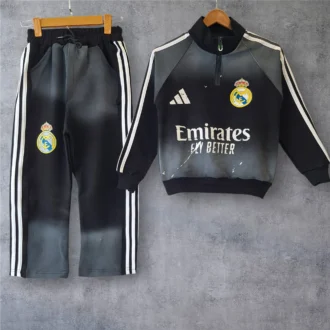 ست نیم زیپ رئال مادرید مشکی دورس دونخ پنبه سایز 55 تا 70