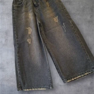 شلوار واید لگ ذغالی کثیف شور جین پنبه سایز 75 تا 100 کد 2268