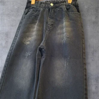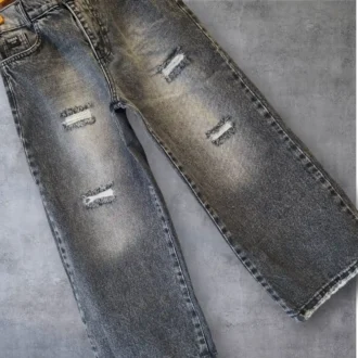 شلوار ذغالی تیره کثیف شور بگ جین پنبه سایز 75 تا 100 کد 2436