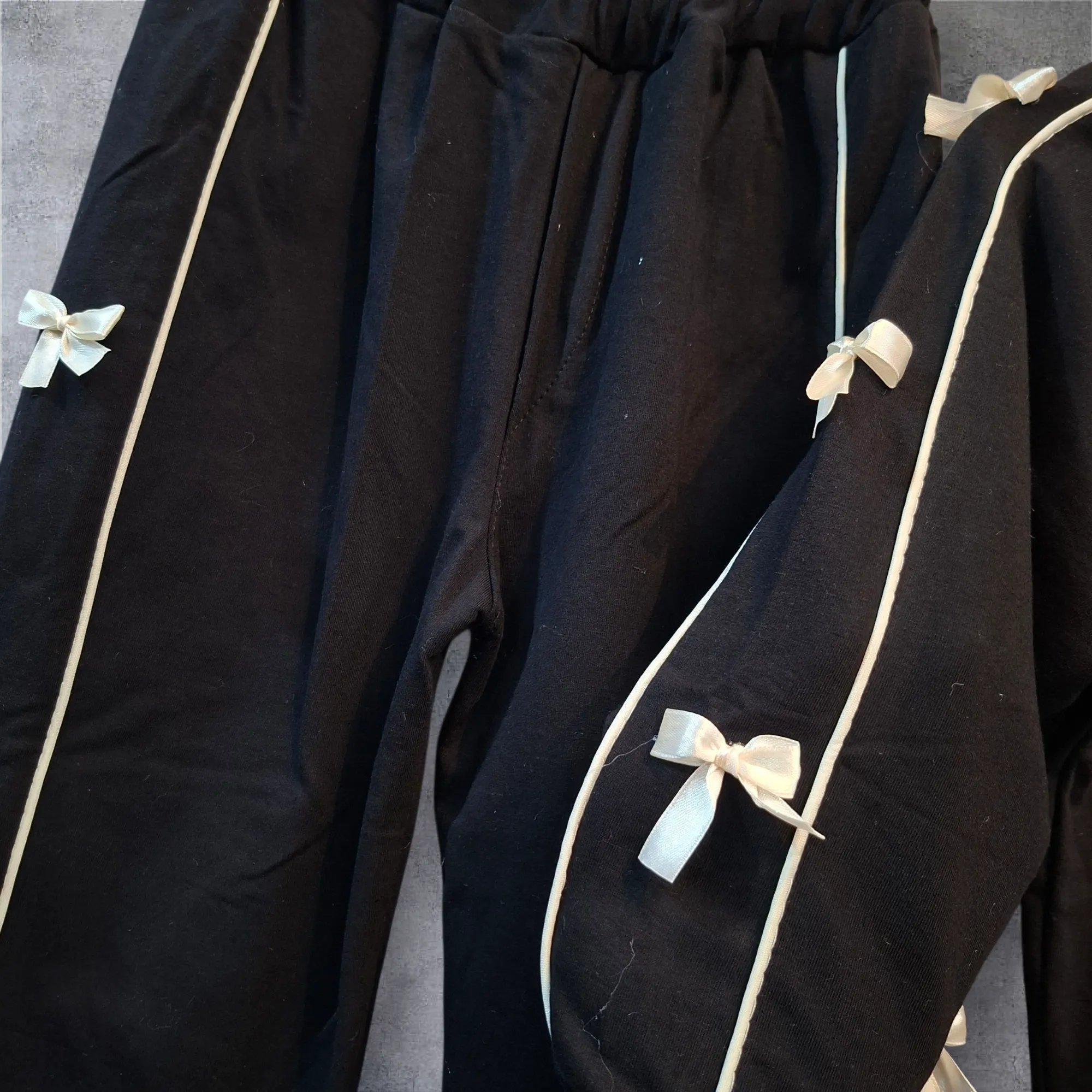 ست بلوز و شلوار بگ مشکی چاپ پاپیون صورتی سایز 50 تا 65