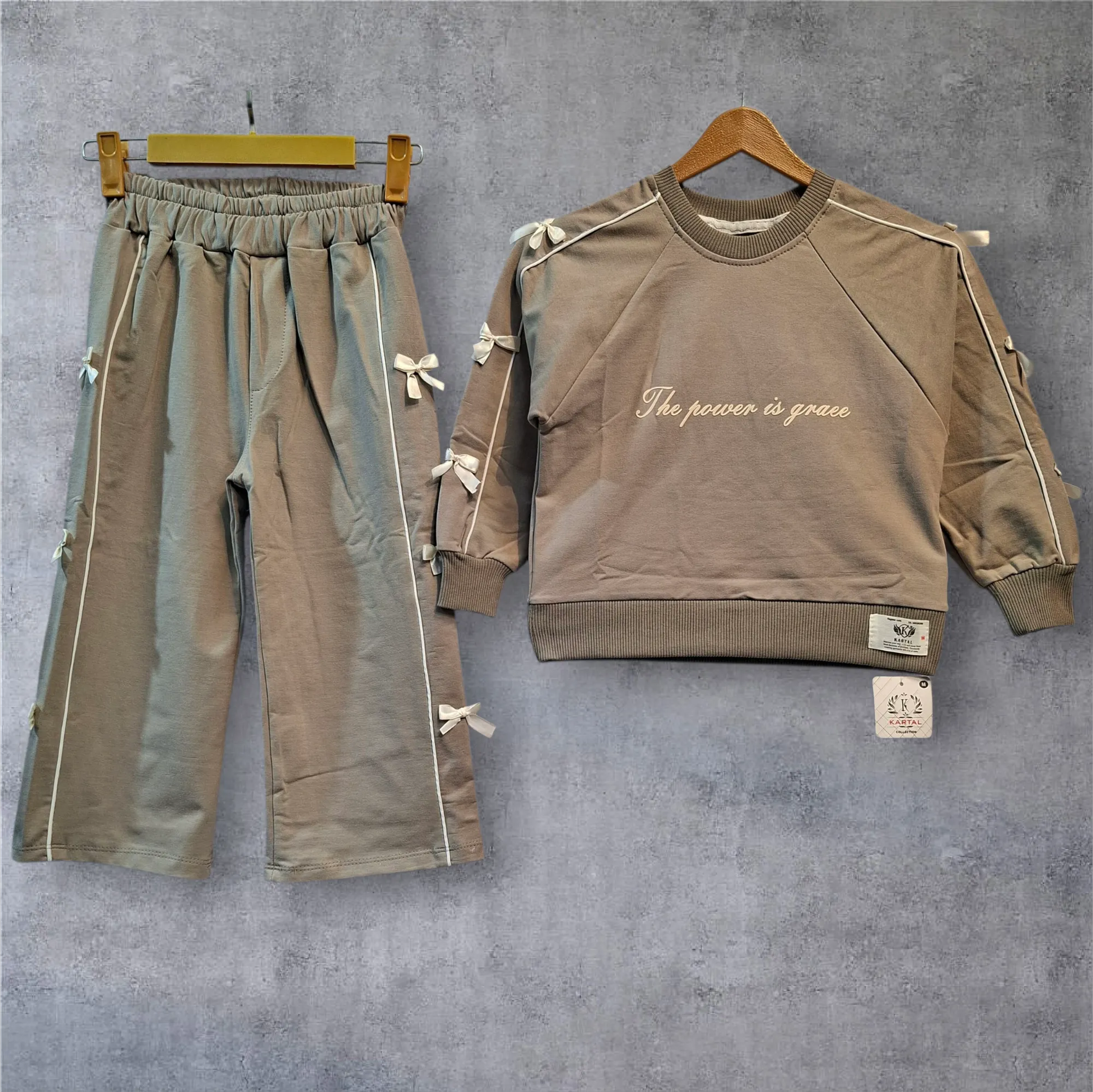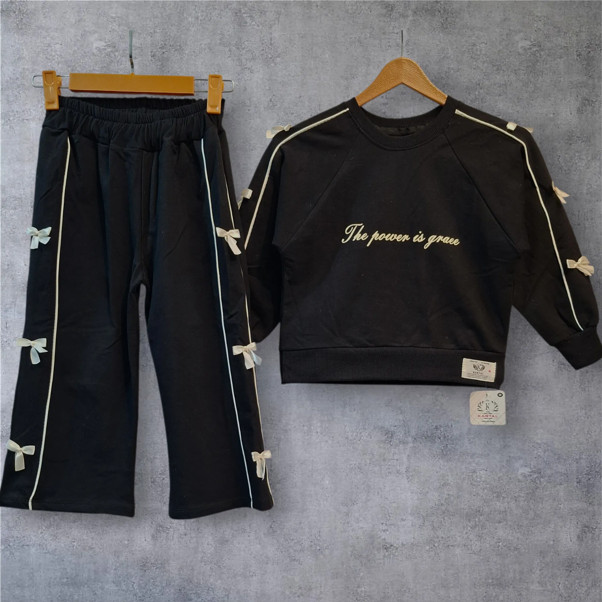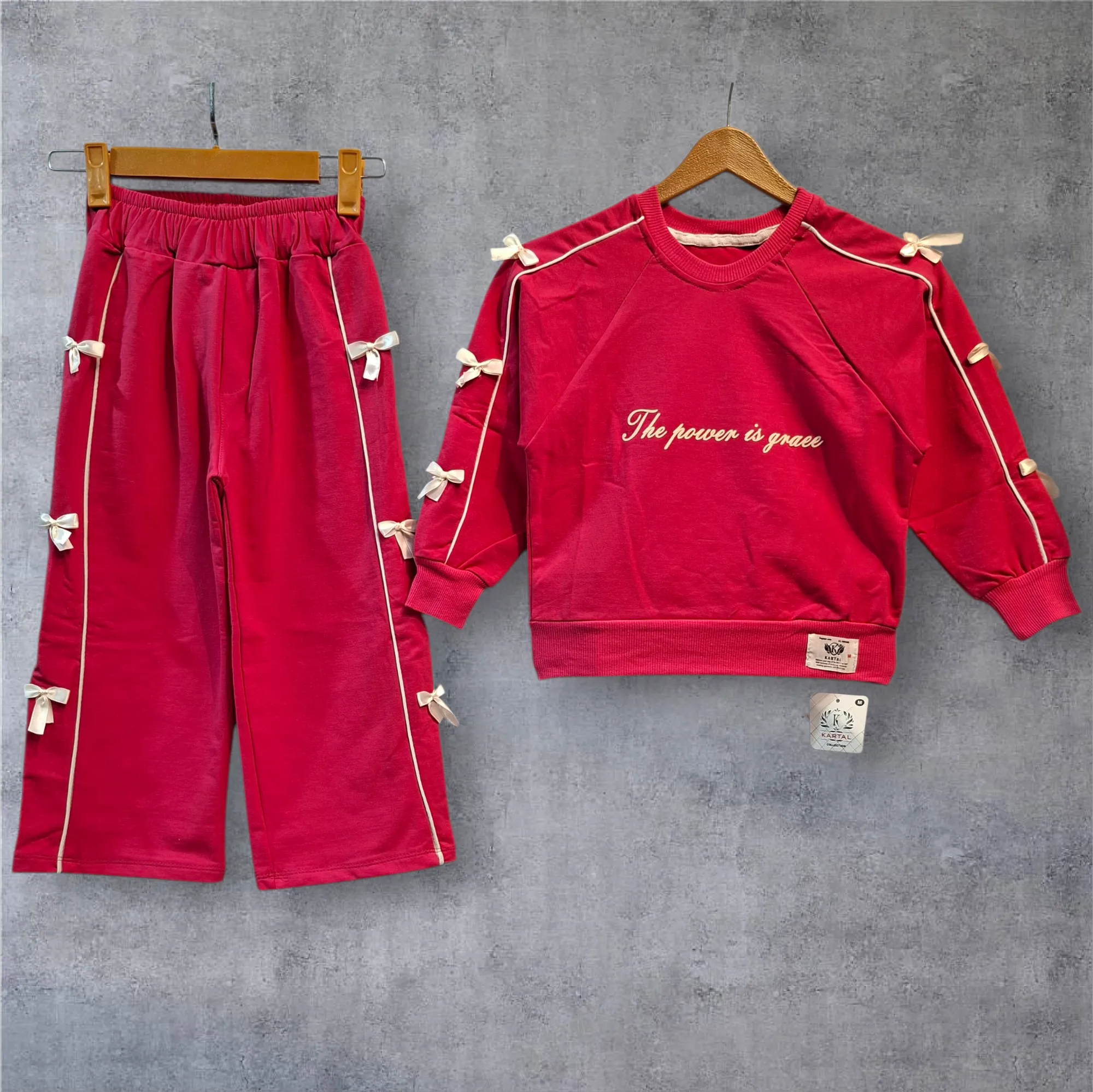 ست دخترانه قلب بلوز و شلوار دورس دو نخ سایز 45 تا 65
