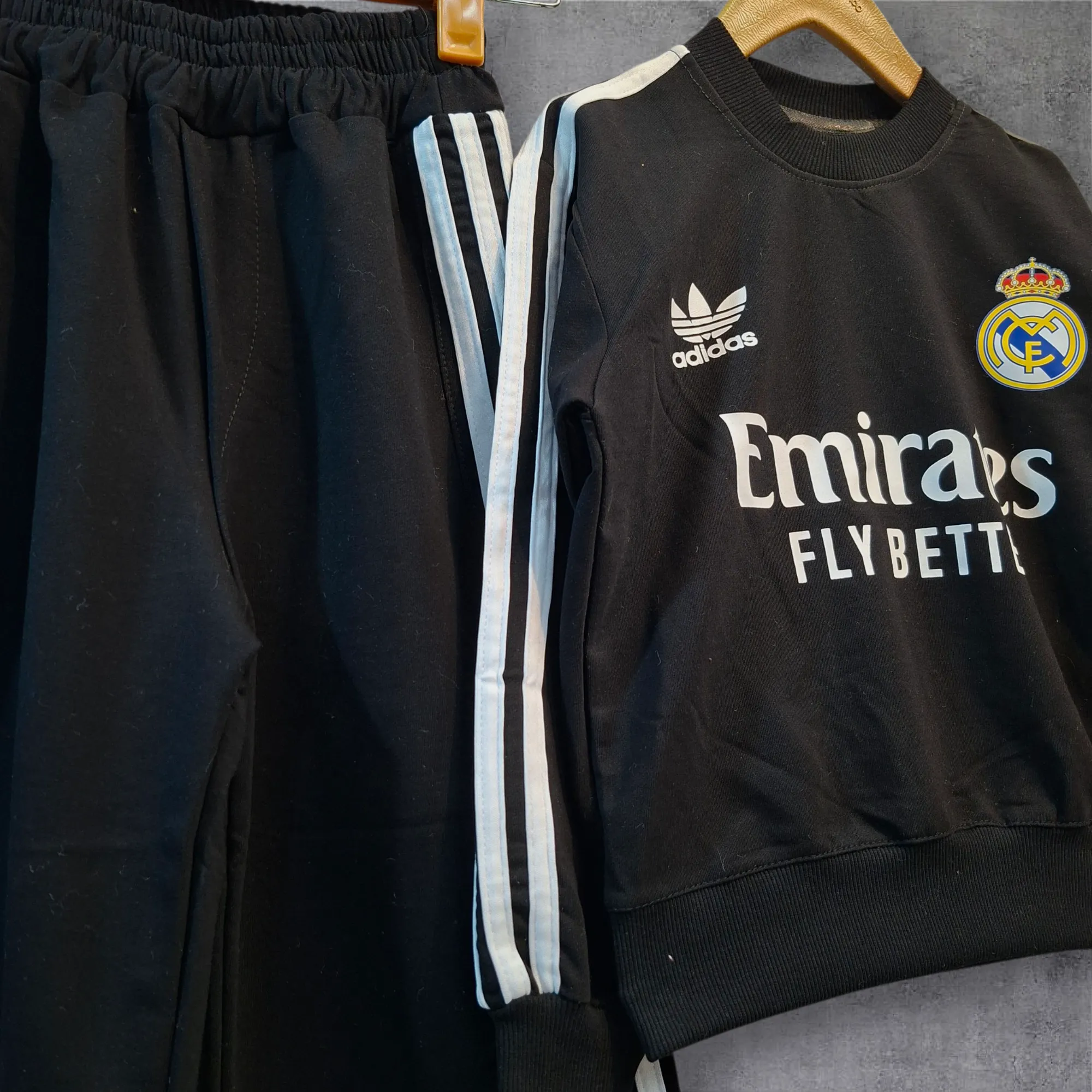 ست نیم زیپ رئال مادرید مشکی دورس دونخ پنبه سایز 55 تا 70