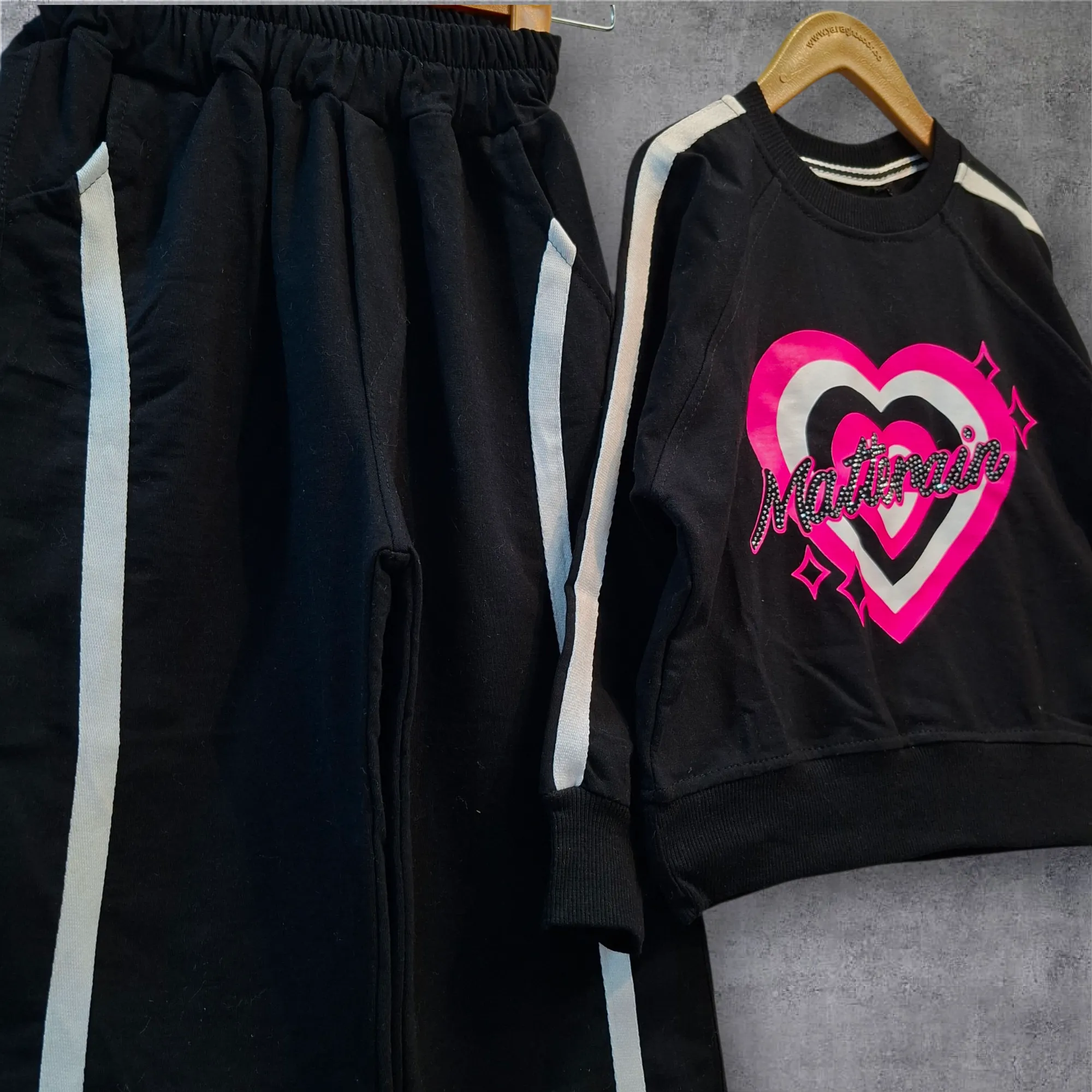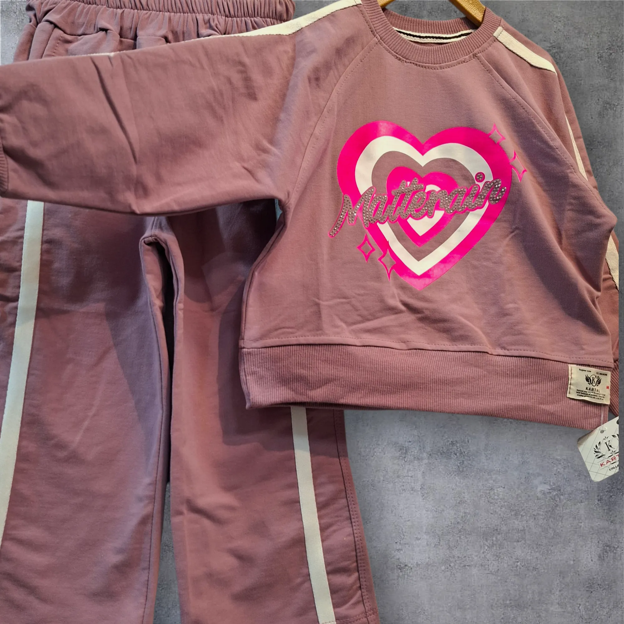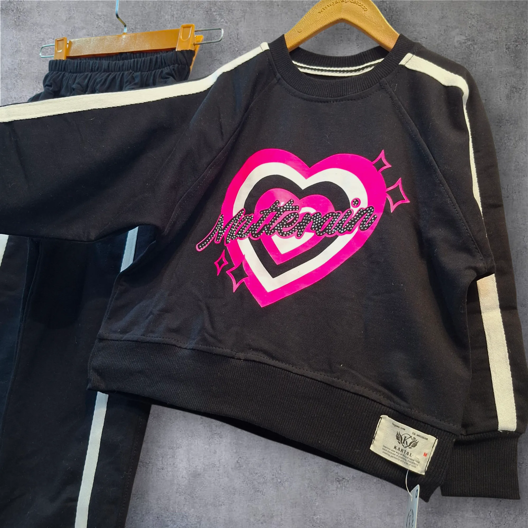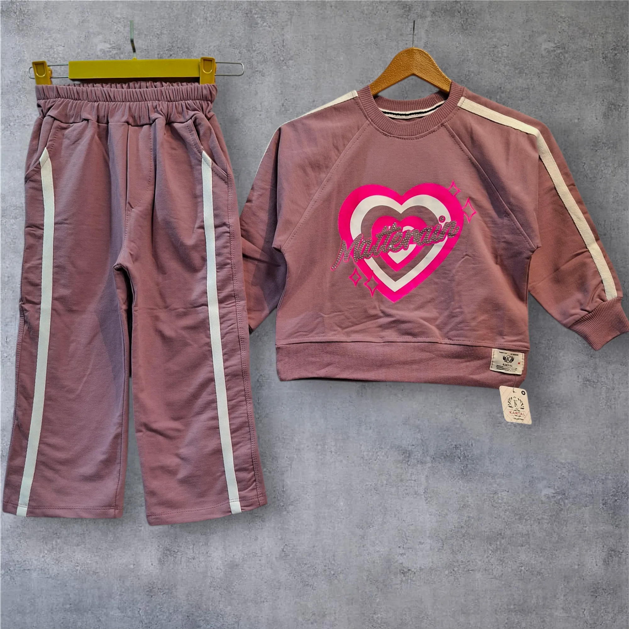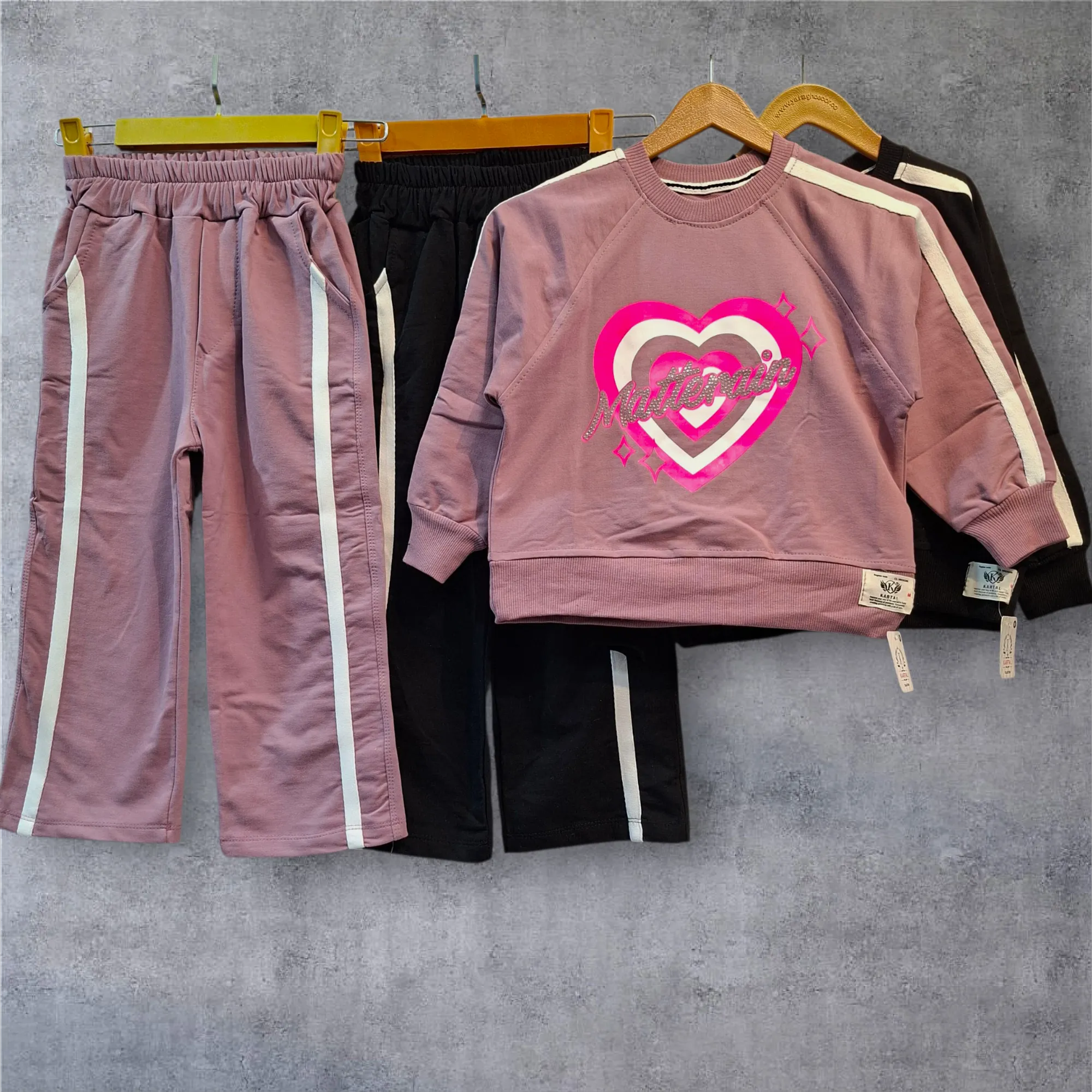 ست دخترانه قلب بلوز و شلوار دورس دو نخ سایز 45 تا 65