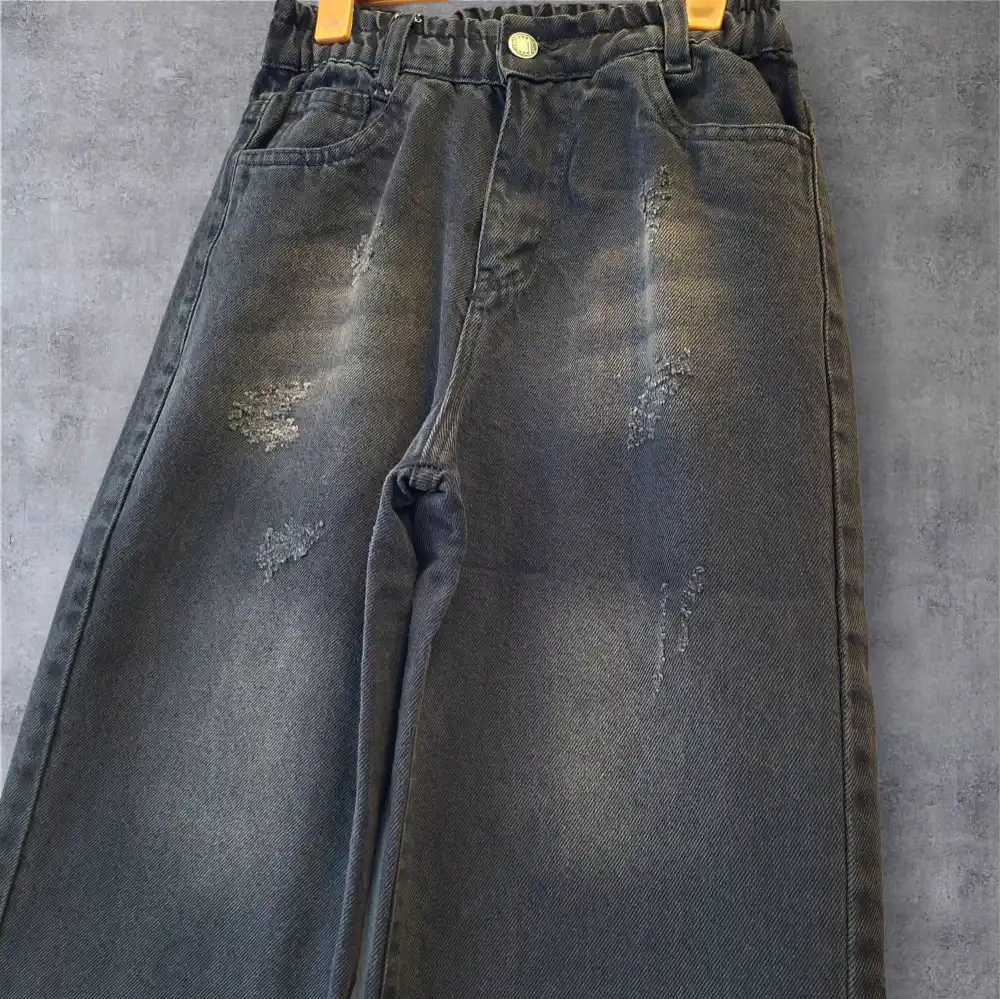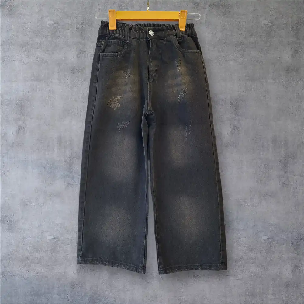 شلوار واید لگ ذغالی کثیف شور جین پنبه سایز 75 تا 100 کد 2268